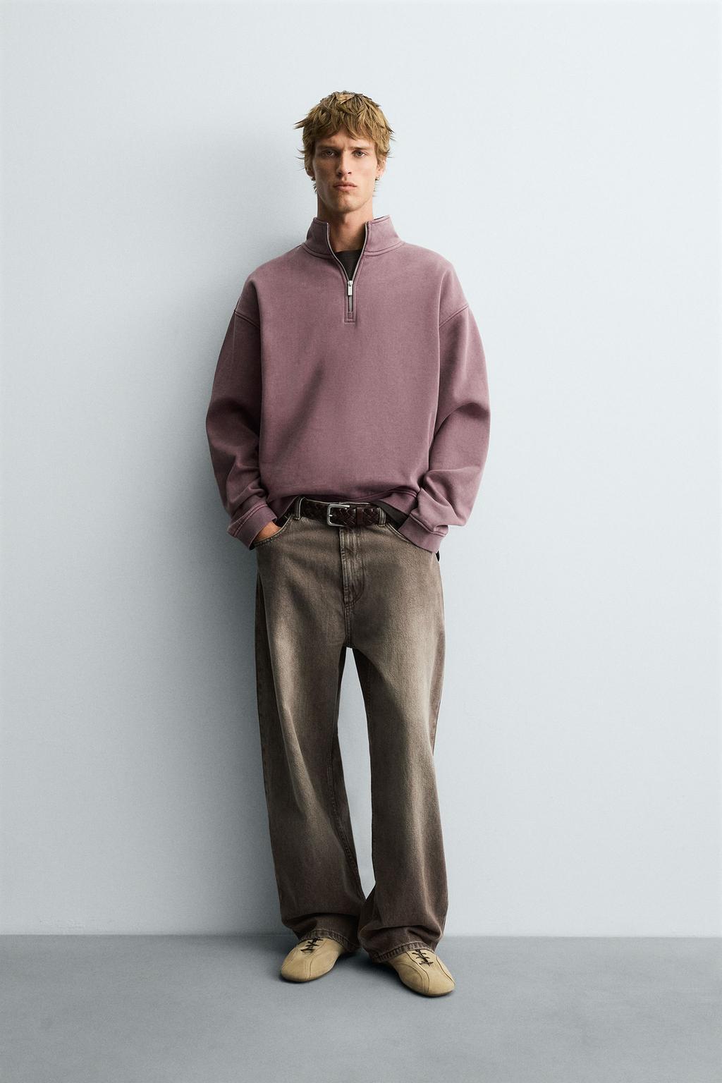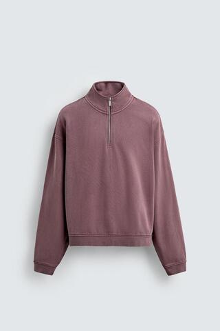 ZARA ТОЛСТОВКА С ЭФФЕКТОМ ПОТЕРТОСТИ И ВОРОТНИКОМ НА МОЛНИИ, МАЛИНОВЫЙ