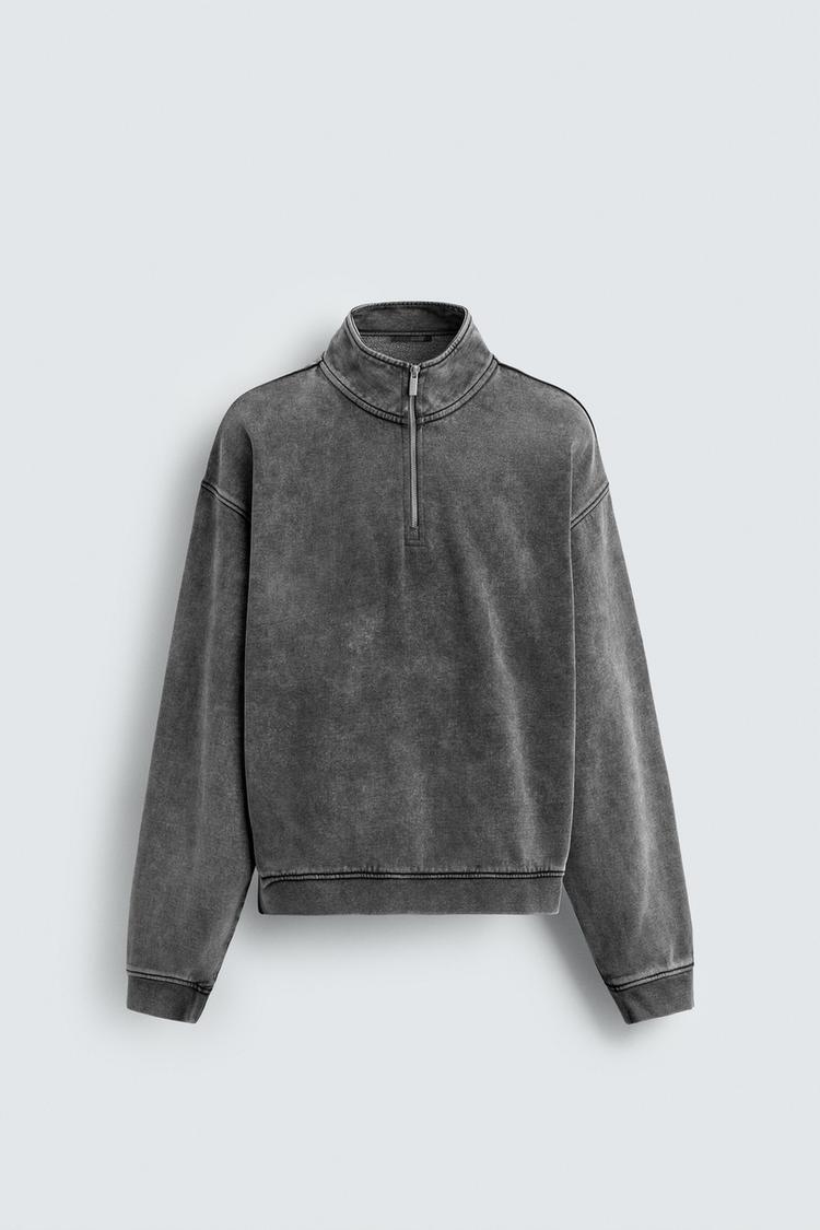 ZARA ТОЛСТОВКА С ЭФФЕКТОМ ПОТЕРТОСТИ И ВОРОТНИКОМ НА МОЛНИИ, СЕРОВАТЫЙ