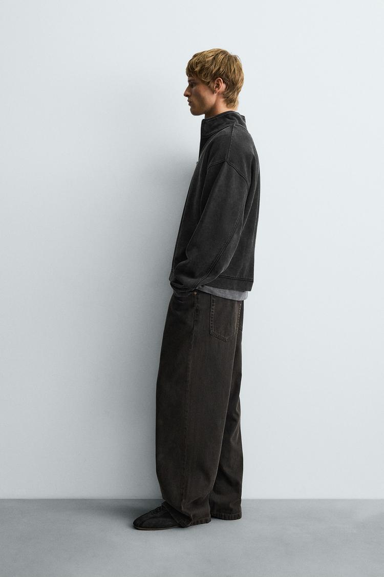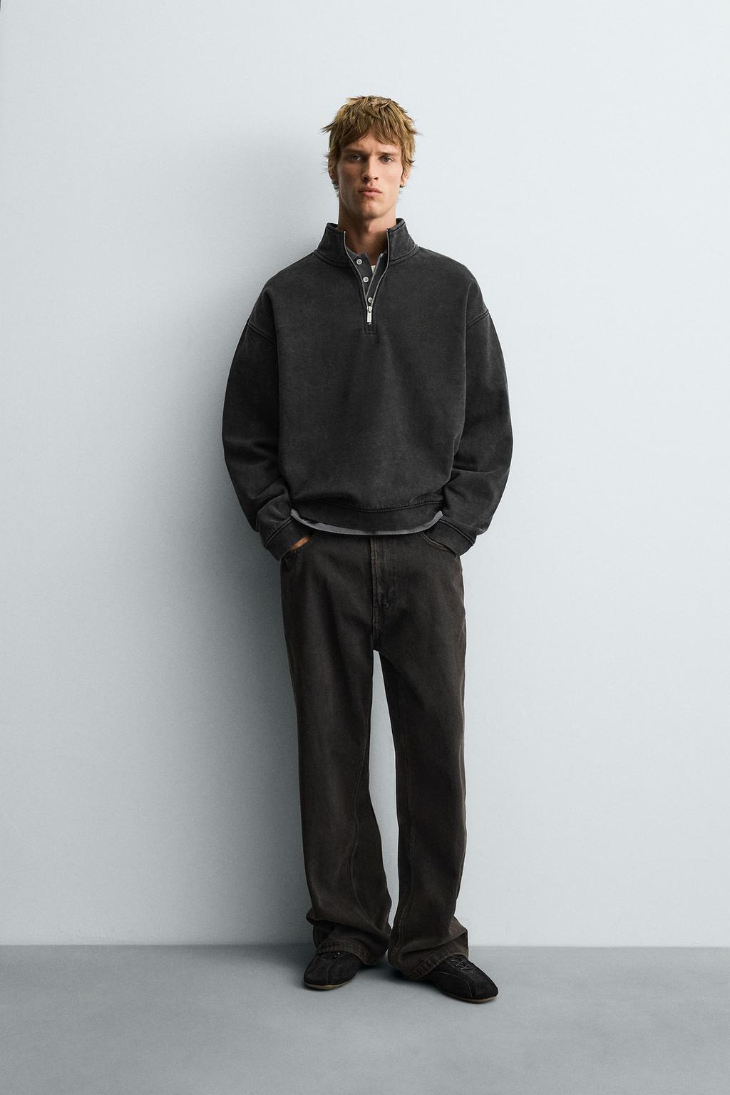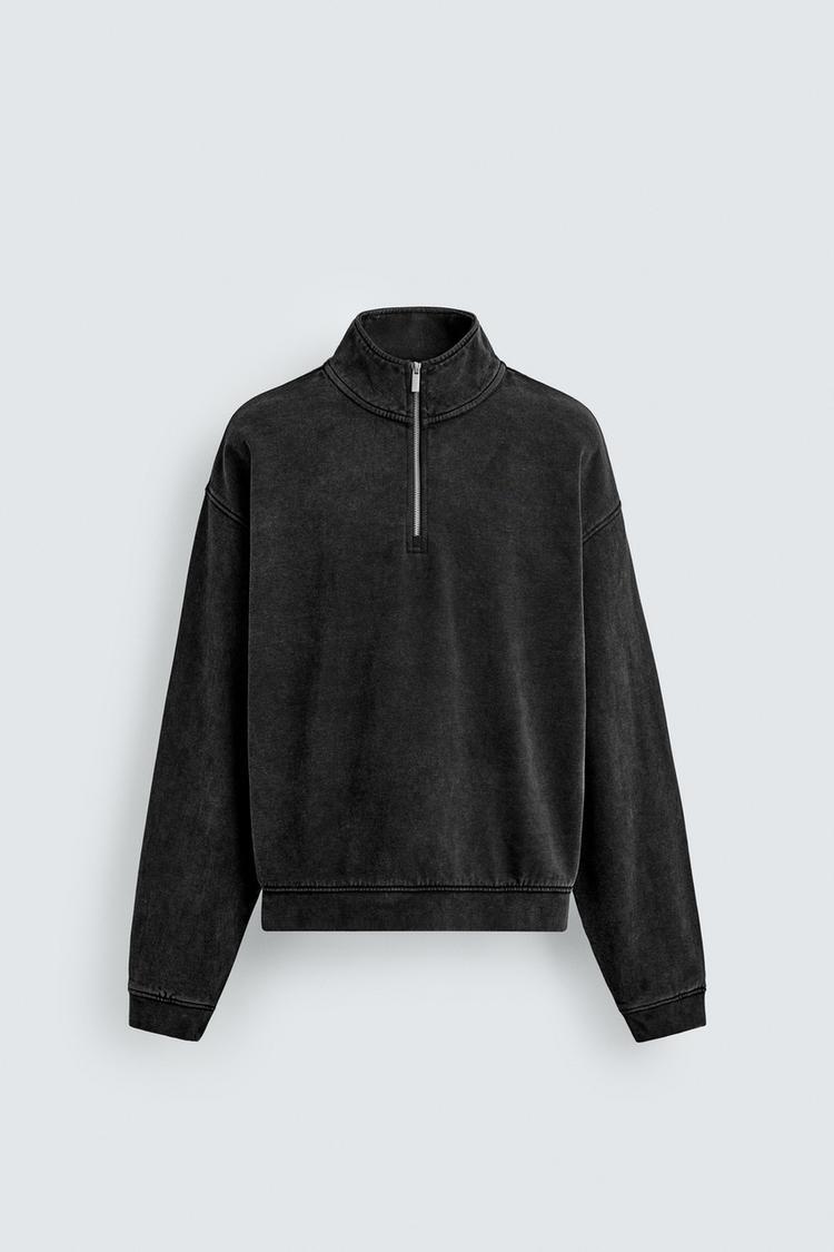 ZARA ТОЛСТОВКА С ЭФФЕКТОМ ПОТЕРТОСТИ И ВОРОТНИКОМ НА МОЛНИИ, ТЕМНО-СЕРЫЙ