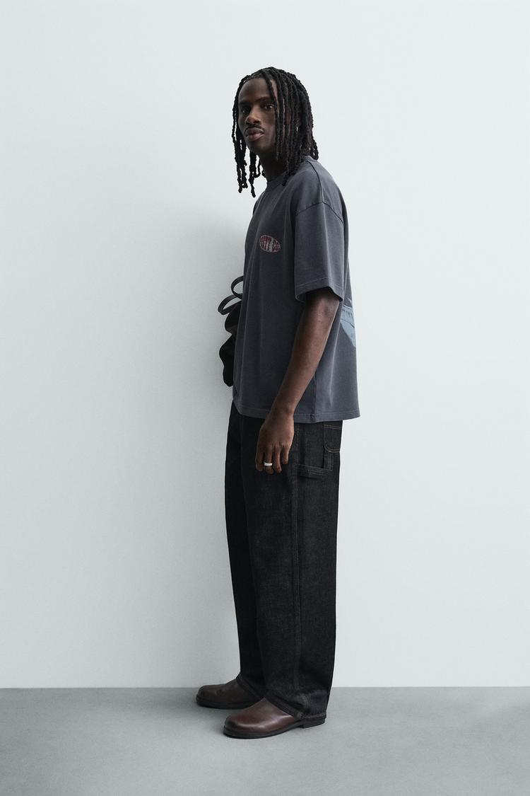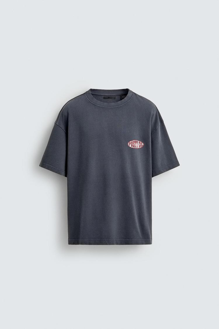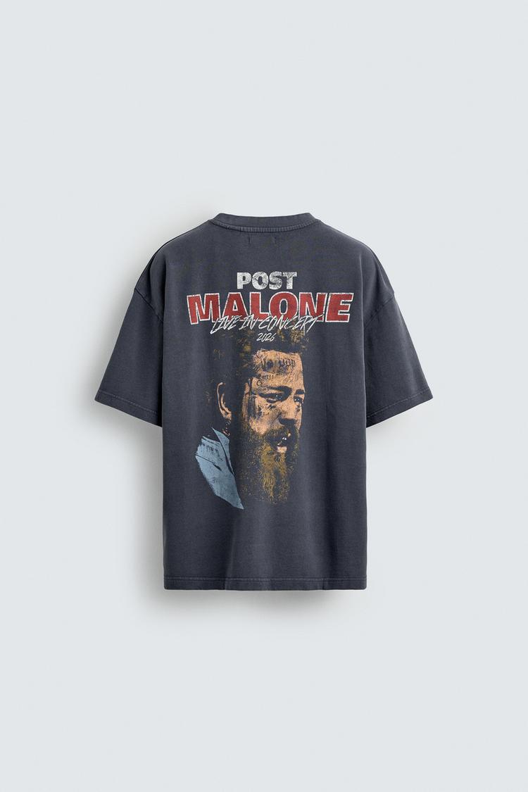 ZARA ТОЛСТОВКА С ЭФФЕКТОМ ПОТЕРТОСТИ С ГРАФИЧЕСКИМ ПРИНТОМ POST MALONE ™, СИНИЙ