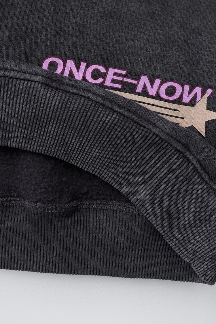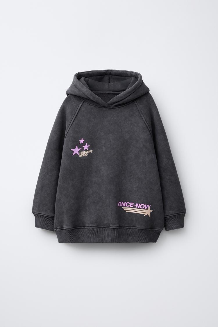 ZARA ТОЛСТОВКА С ЭФФЕКТОМ ПОТЕРТОСТИ С КАПЮШОНОМ И ТЕКСТОМ, АНТРАЦИТОВО-СЕРЫЙ