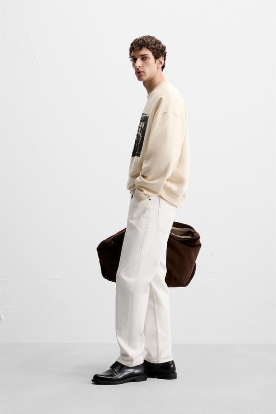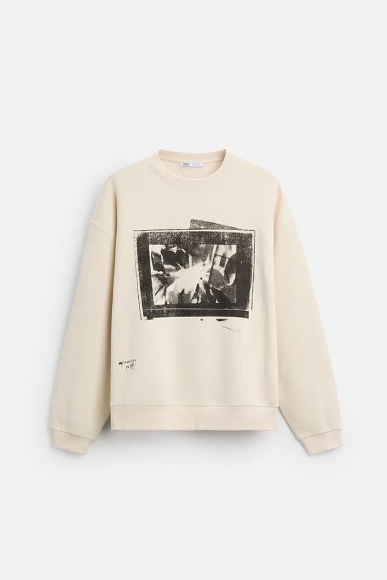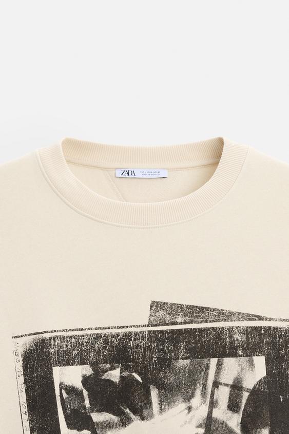 ZARA ТОЛСТОВКА С ФОТОГРАФИЧЕСКИМ ПРИНТОМ, ЖЕЛТОВАТО-БЕЛЫЙ