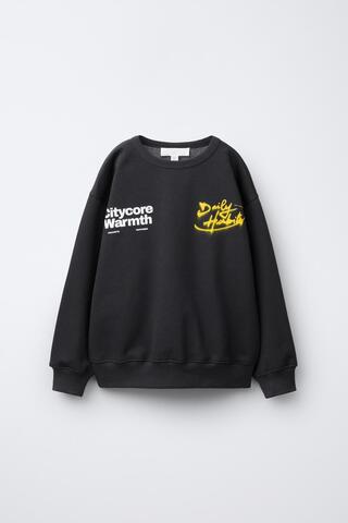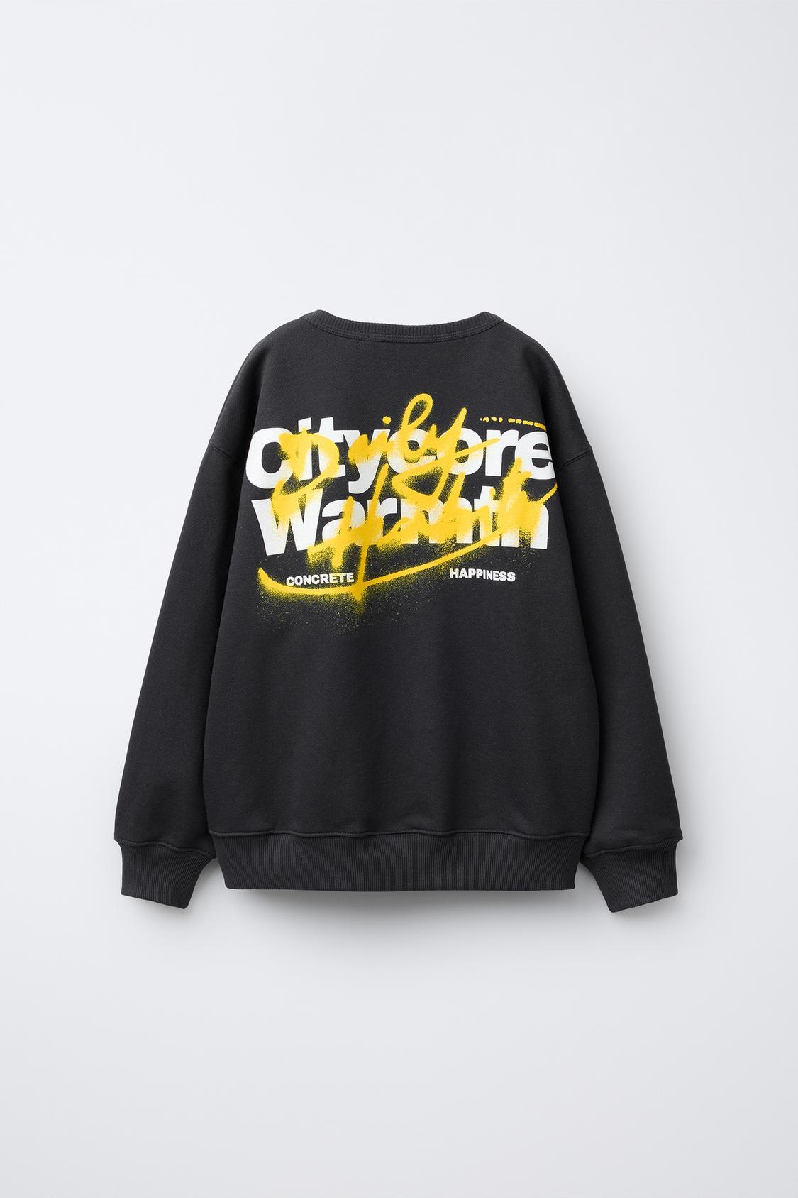 ZARA ТОЛСТОВКА С ГРАФФИТИ-ПРИНТОМ, ТЕМНЫЙ АНТРАЦИТ