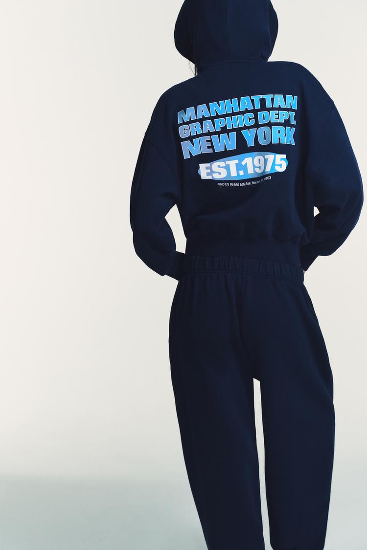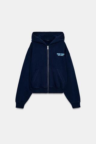 ZARA ТОЛСТОВКА С КАПЮШОНОМ И НАДПИСЬЮ, СИНИЙ