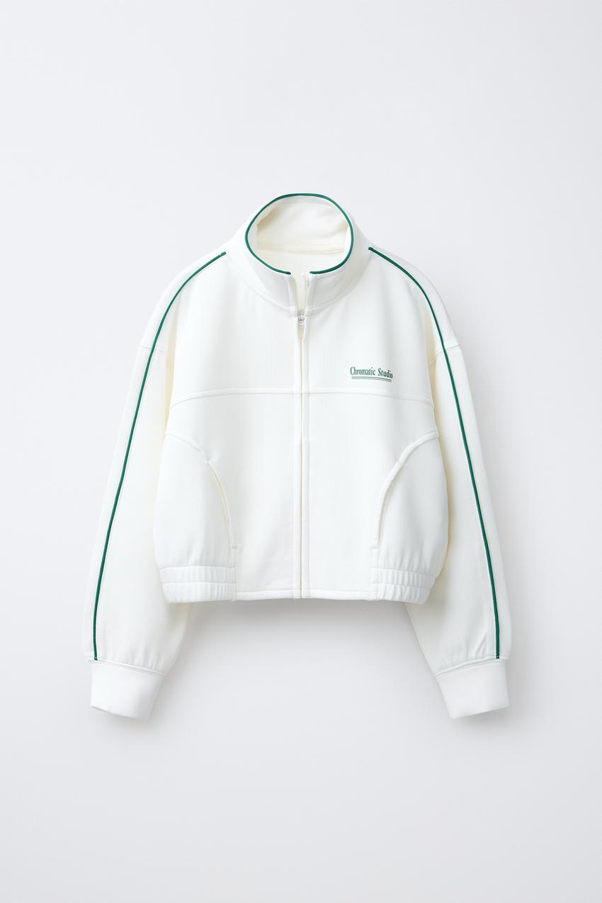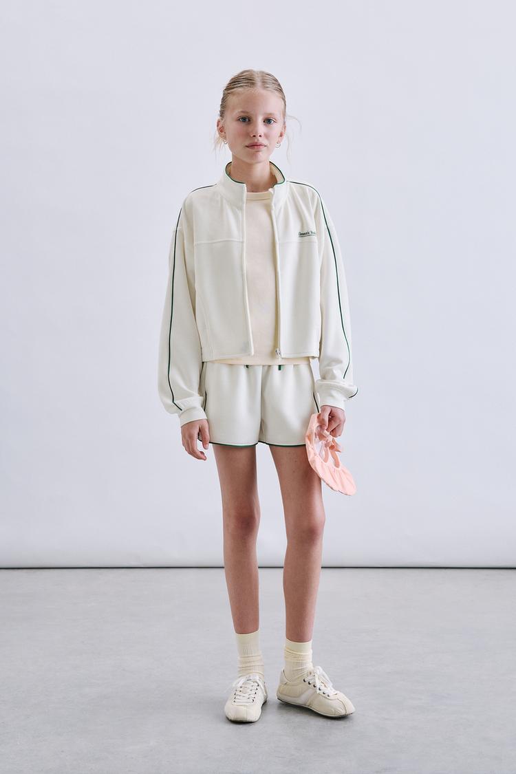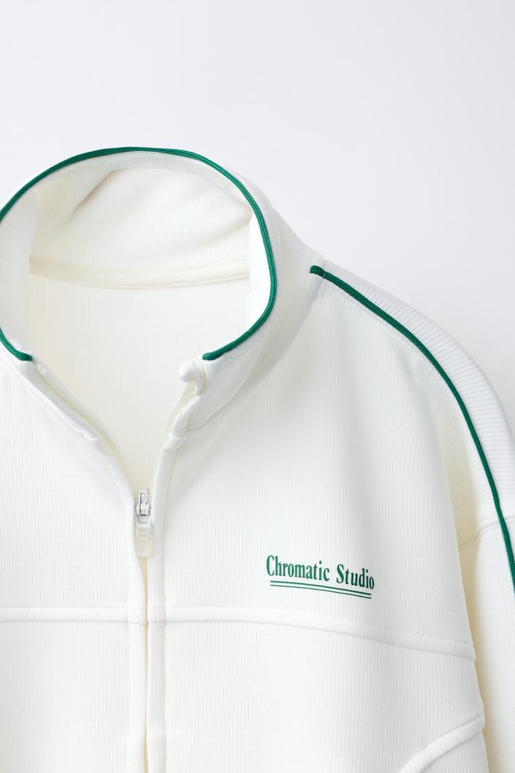 ZARA ТОЛСТОВКА С КОНТРАСТНОЙ ОТДЕЛКОЙ В РУБЧИК И МОЛНИЕЙ, СВЕТЛЫЙ ЭКРЮ