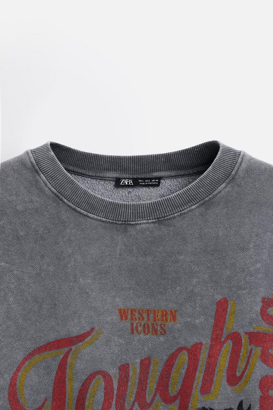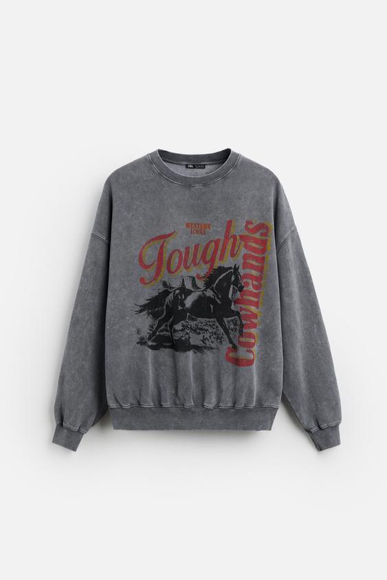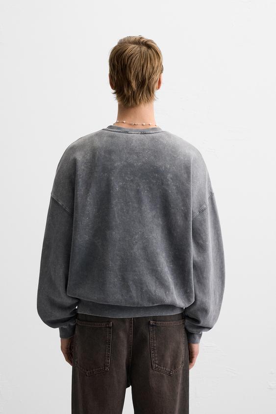 ZARA ТОЛСТОВКА С КОНТРАСТНЫМ ПРИНТОМ, АНТРАЦИТОВО-СЕРЫЙ