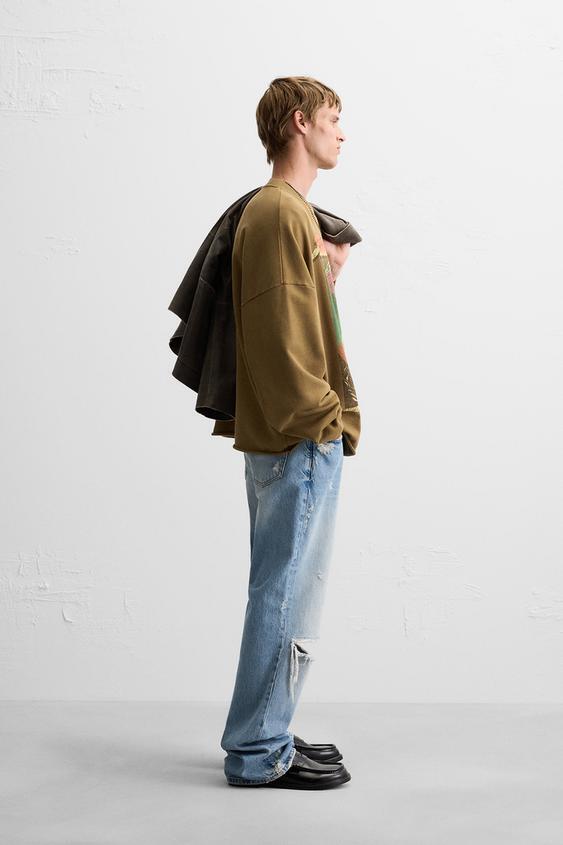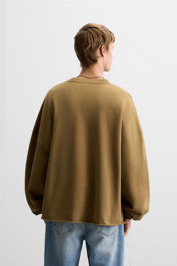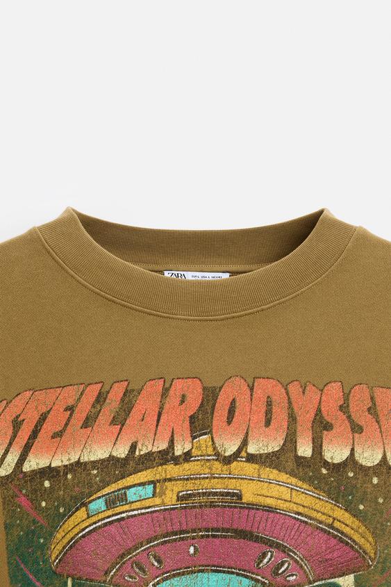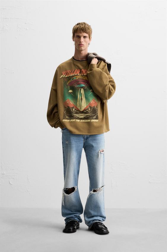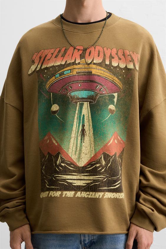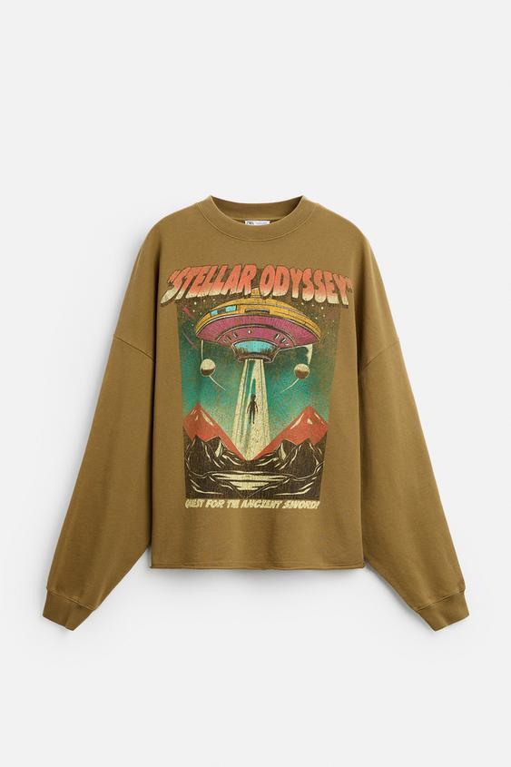 ZARA ТОЛСТОВКА С КОНТРАСТНЫМ ПРИНТОМ, ТЕМНО-КОРИЧНЕВЫЙ