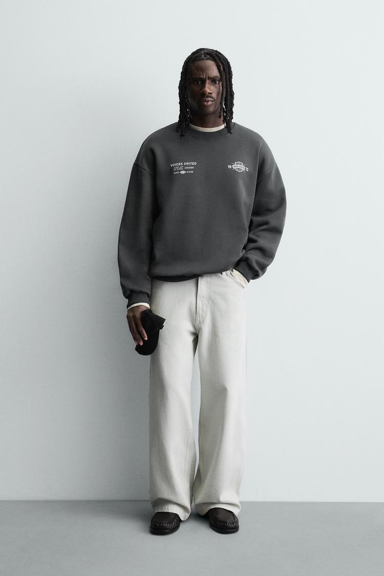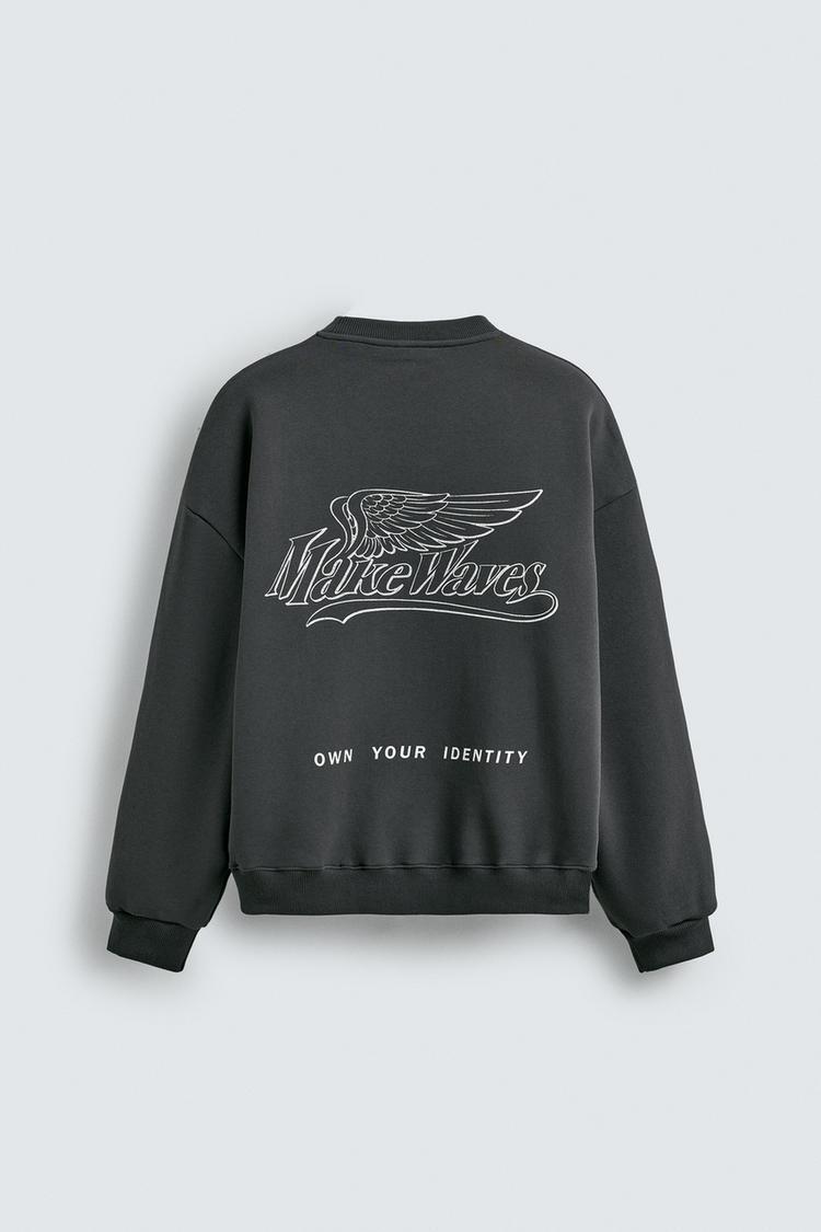 ZARA ТОЛСТОВКА С КОНТРАСТНЫМ ПРИНТОМ, ТЕМНЫЙ АНТРАЦИТ
