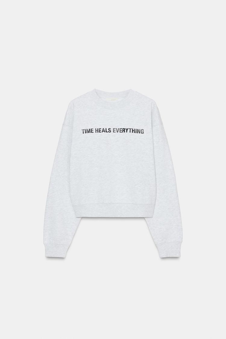 ZARA ТОЛСТОВКА С КОНТРАСТНЫМ ТЕКСТОМ, СЕРЫЙ МЕЛАНЖ