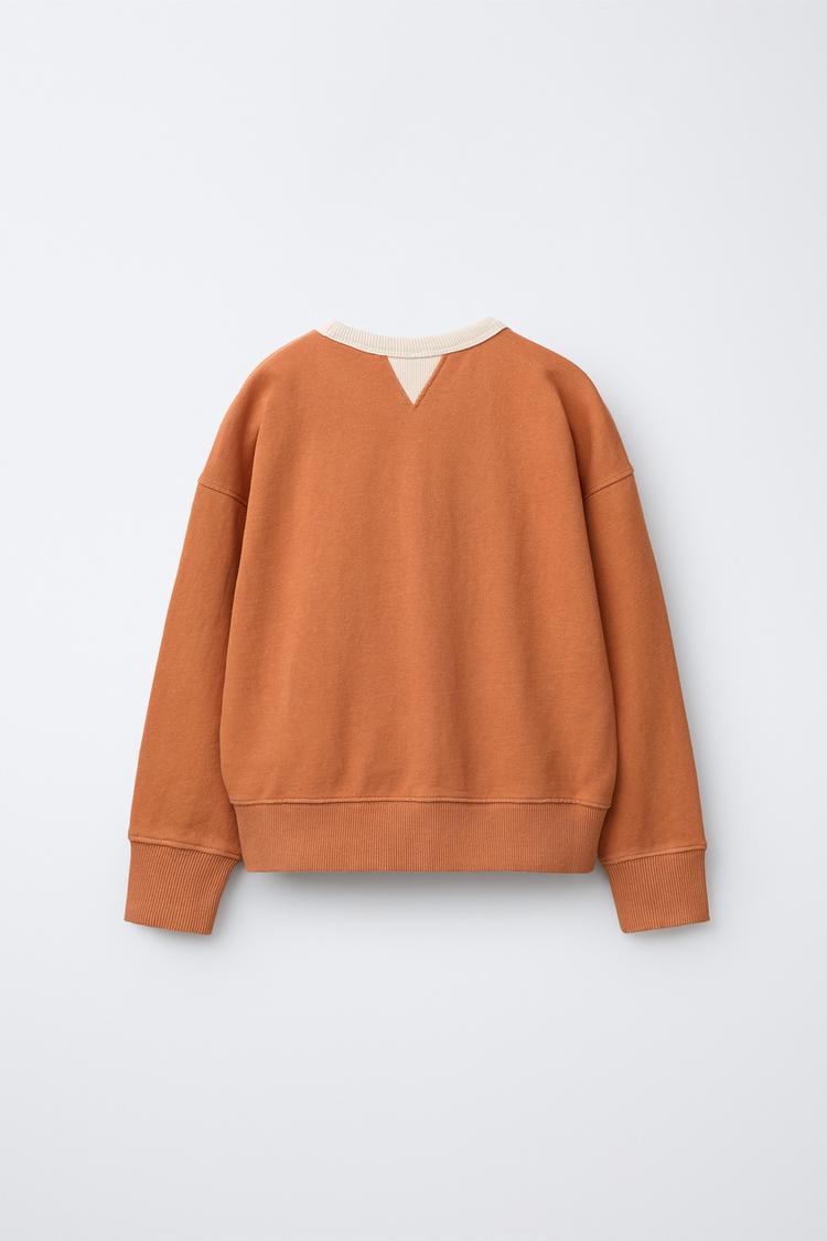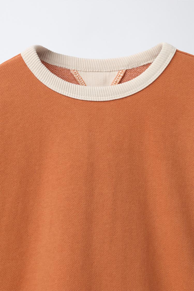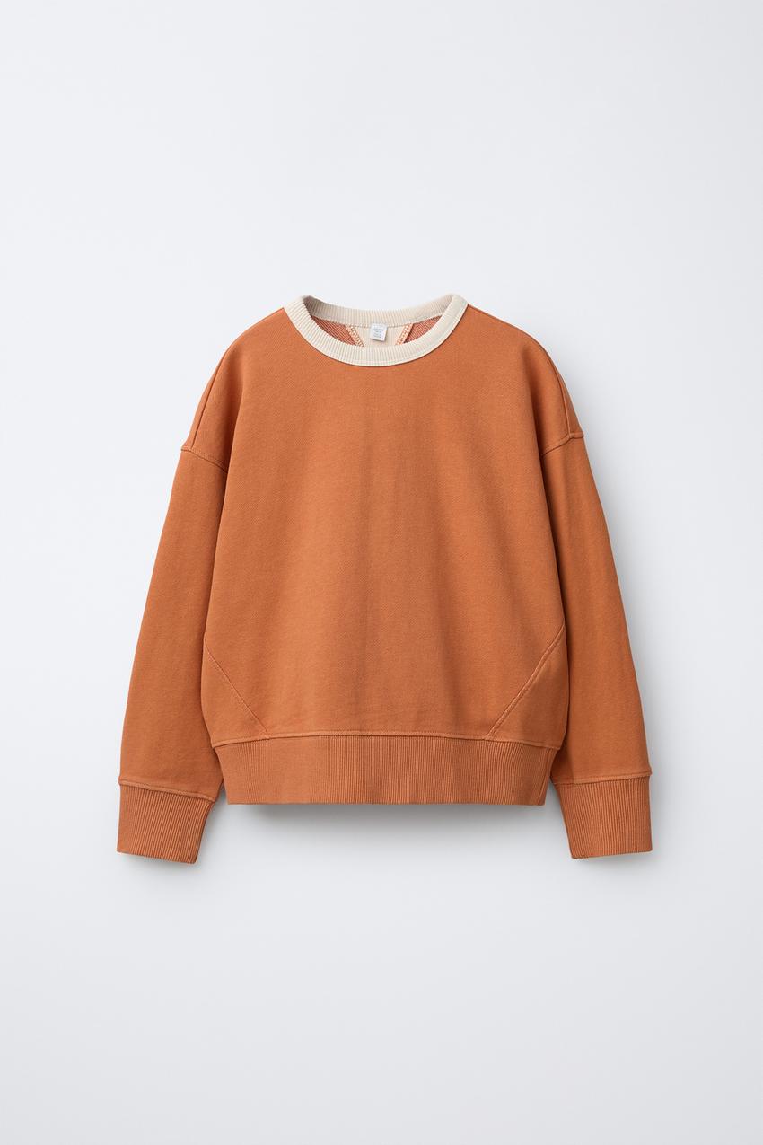 ZARA ТОЛСТОВКА С КОНТРАСТНЫМ ВОРОТНИКОМ И ДЕКОРАТИВНЫМИ ШВАМИ, ОРАНЖЕВЫЙ