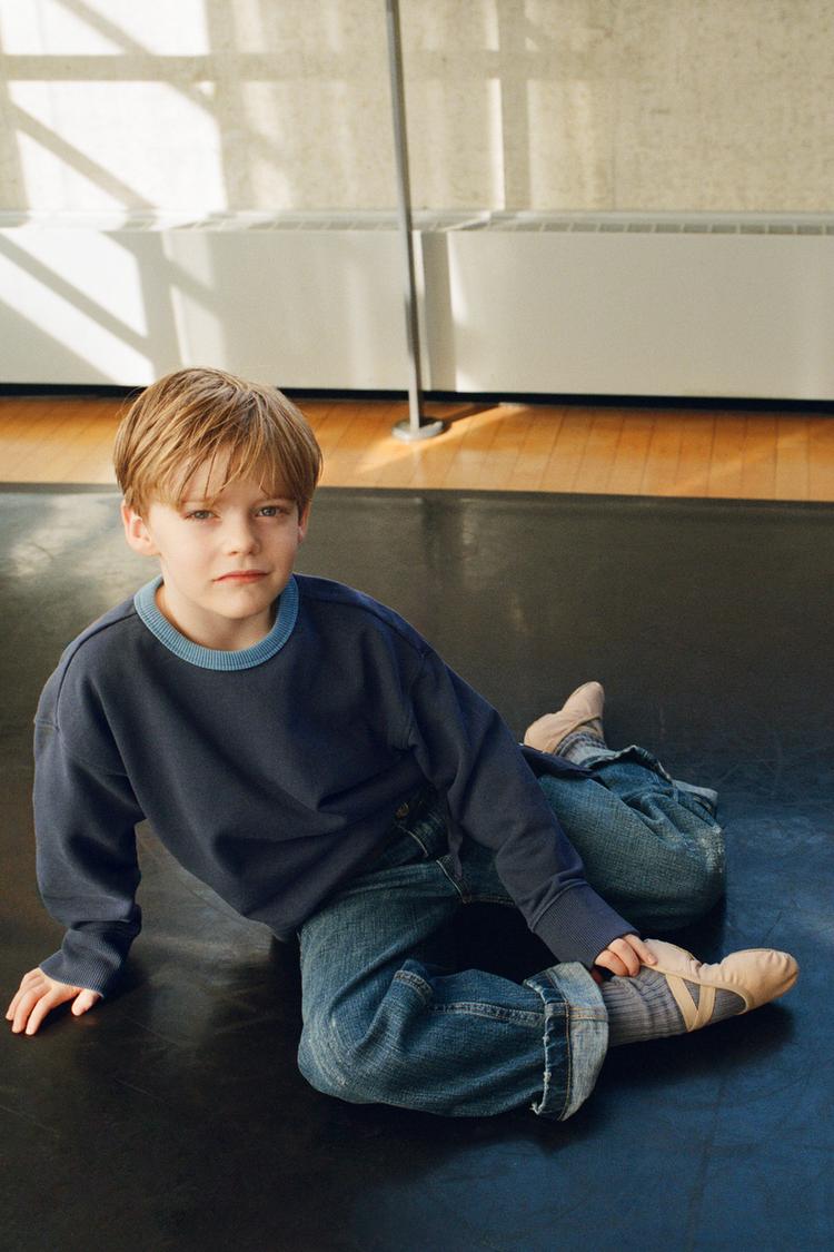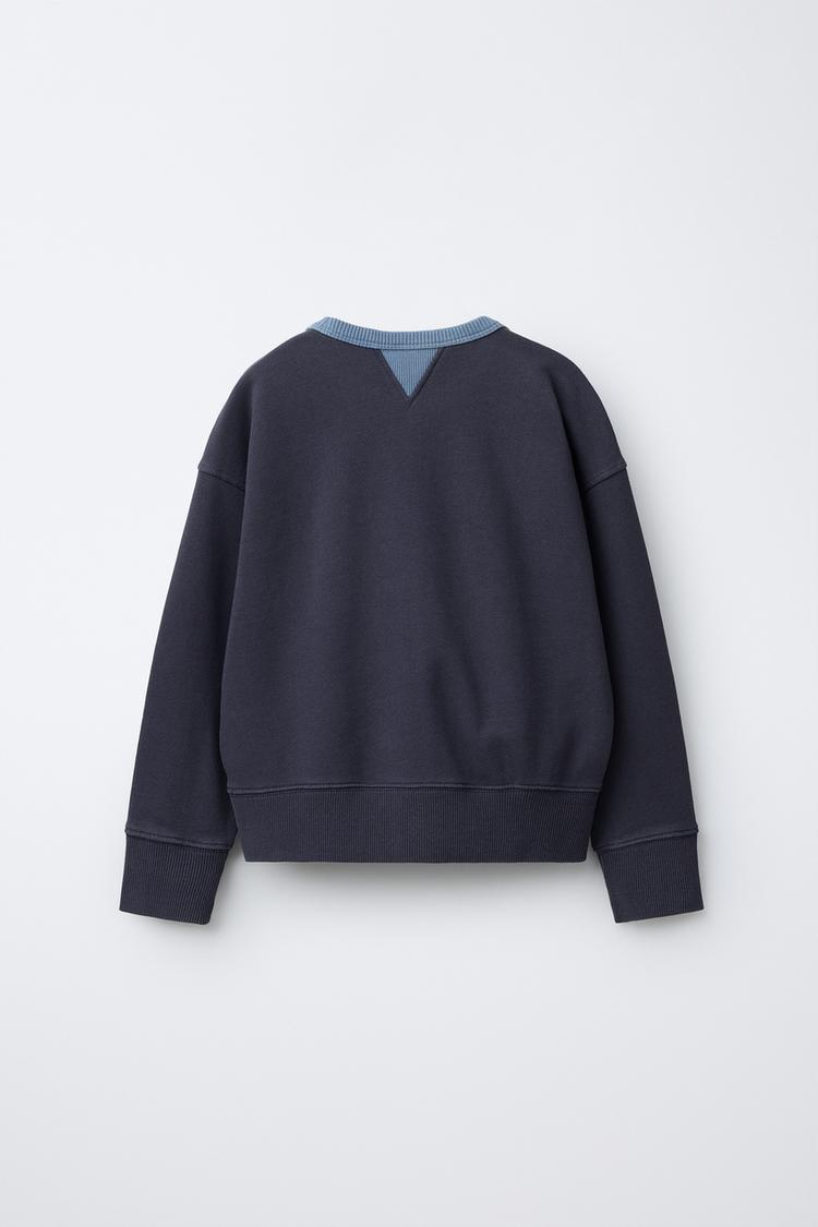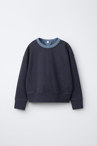 ZARA ТОЛСТОВКА С КОНТРАСТНЫМ ВОРОТНИКОМ И ДЕКОРАТИВНЫМИ ШВАМИ, СИНИЙ