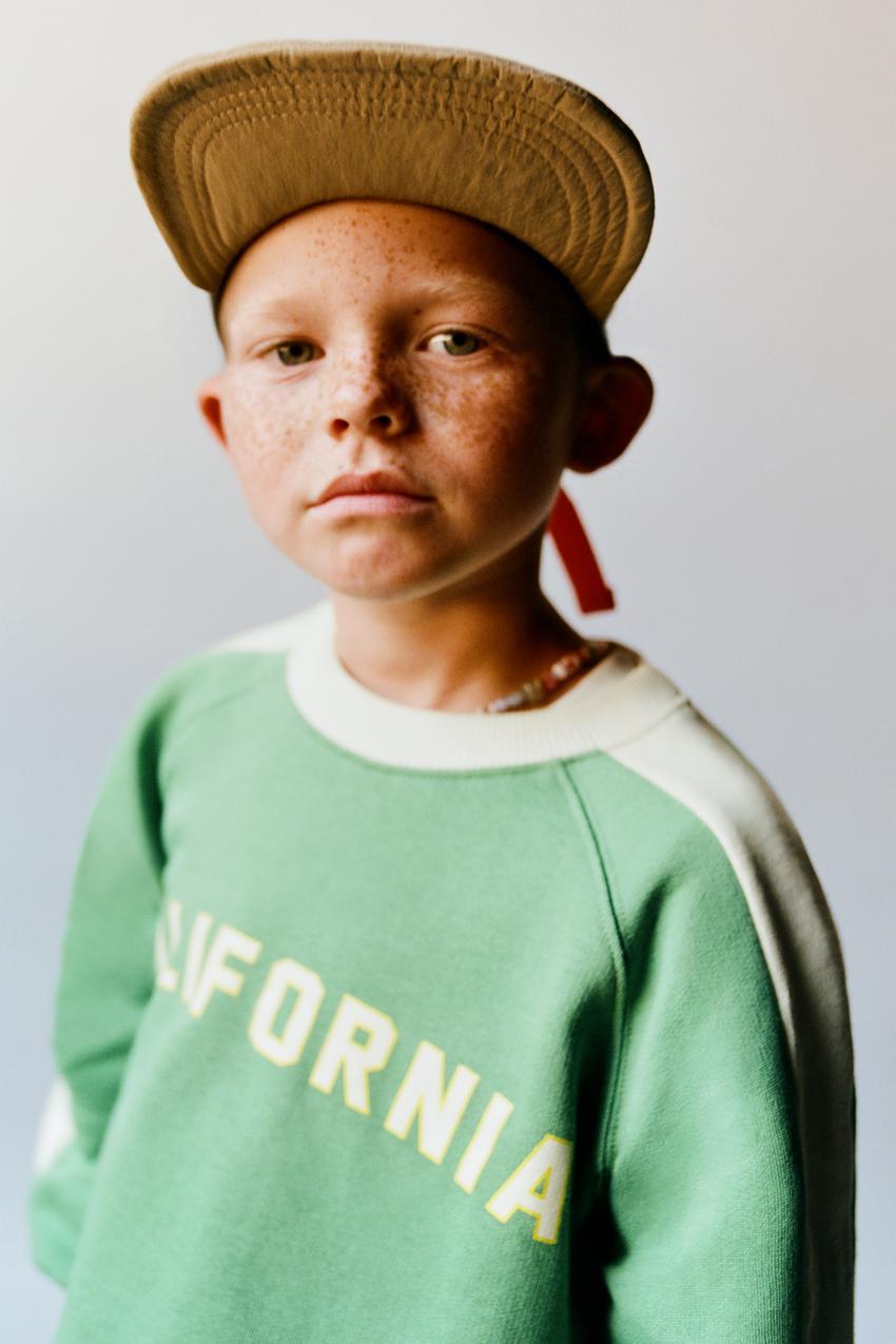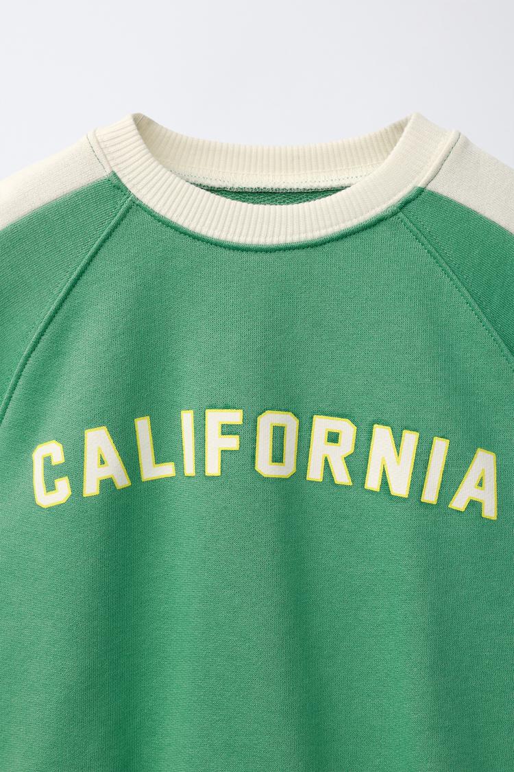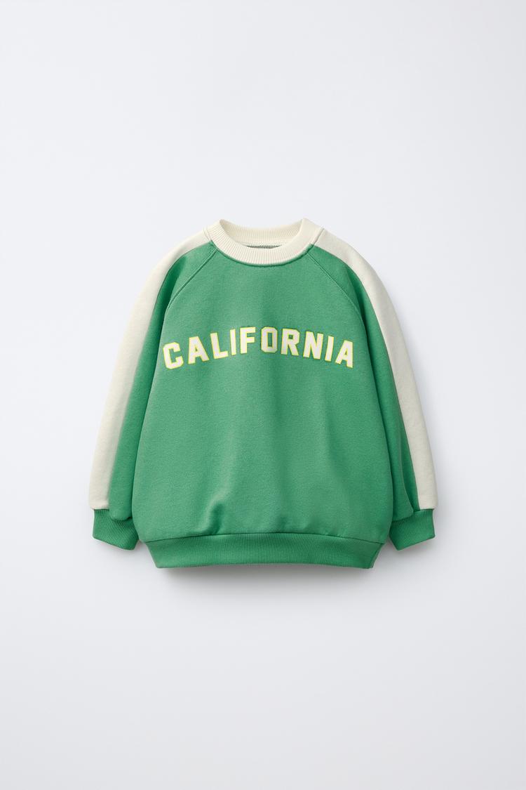 ZARA ТОЛСТОВКА С КОНТРАСТНЫМИ ПОЛОСАМИ И НАДПИСЬЮ, ЗЕЛЕНЫЙ