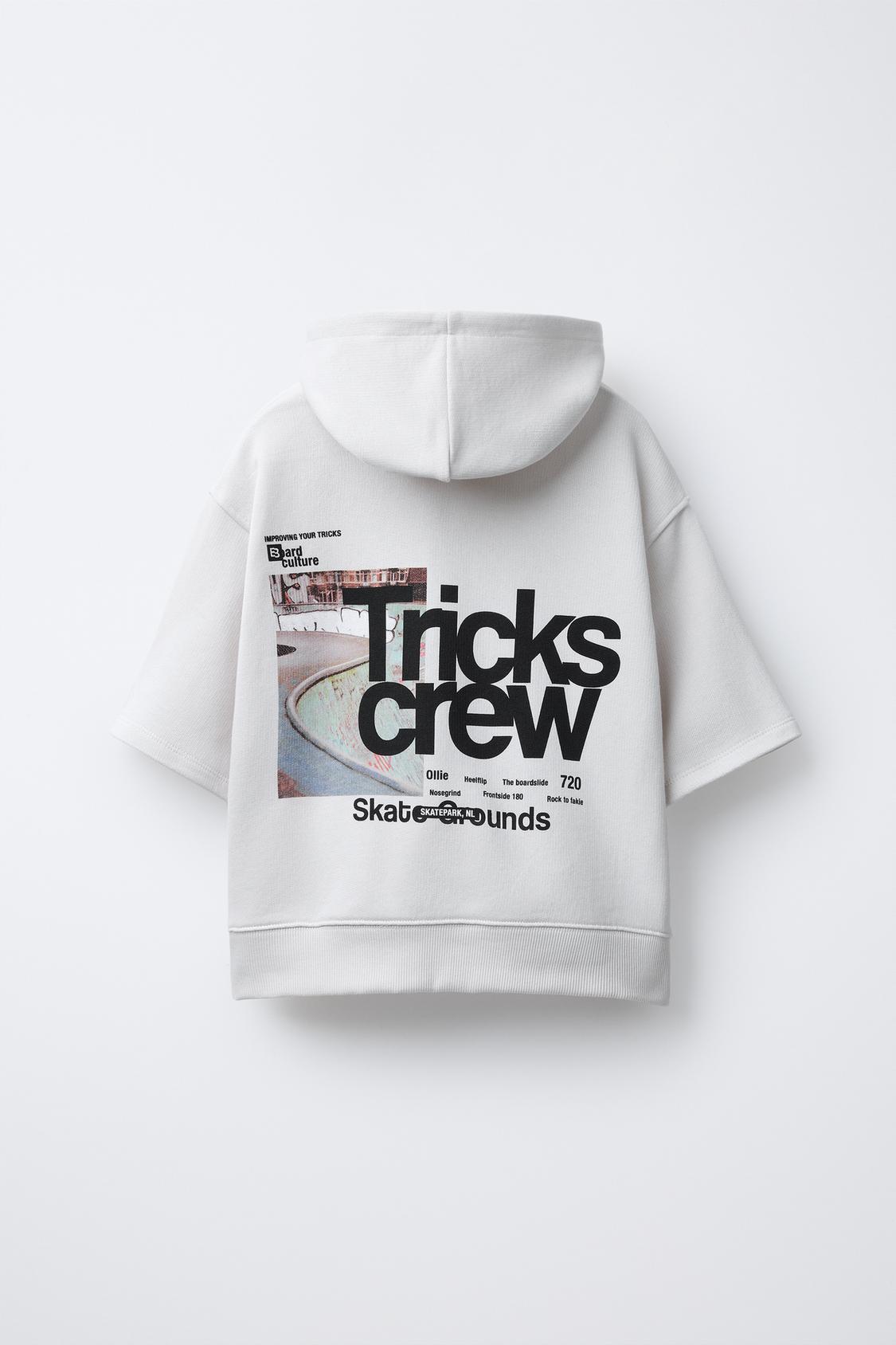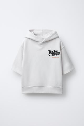 ZARA ТОЛСТОВКА С КОРОТКИМИ РУКАВАМИ И НАДПИСЬЮ, ЭКРЮ