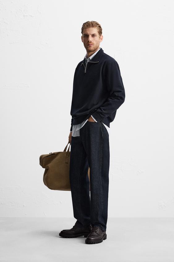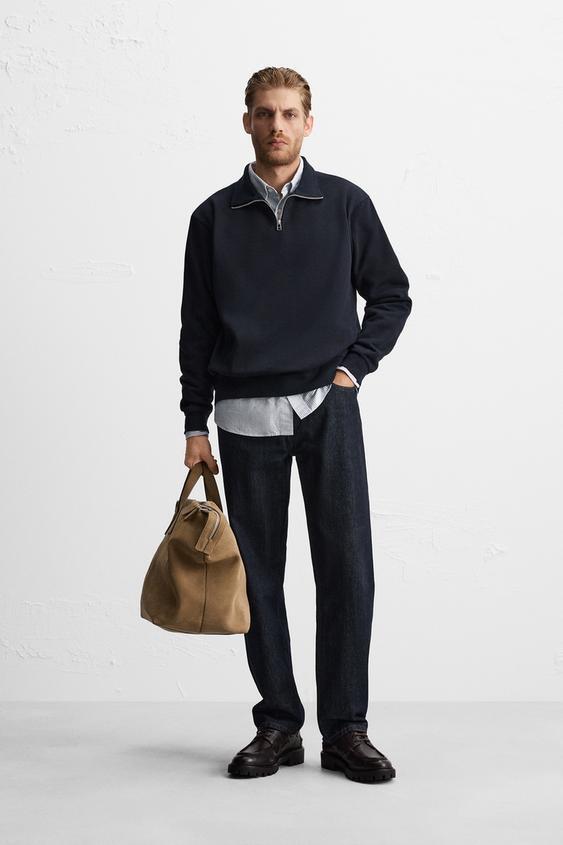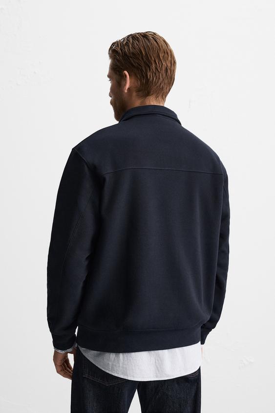 ZARA ТОЛСТОВКА С КОРОТКОЙ ЗАСТЕЖКОЙ-МОЛНИЕЙ, МОРСКОЙ СИНИЙ