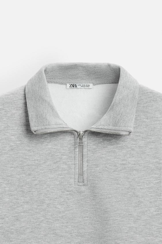 ZARA ТОЛСТОВКА С КОРОТКОЙ ЗАСТЕЖКОЙ-МОЛНИЕЙ, СЕРЫЙ С МЕЛАНЖЕВЫМ ЭФФЕКТОМ