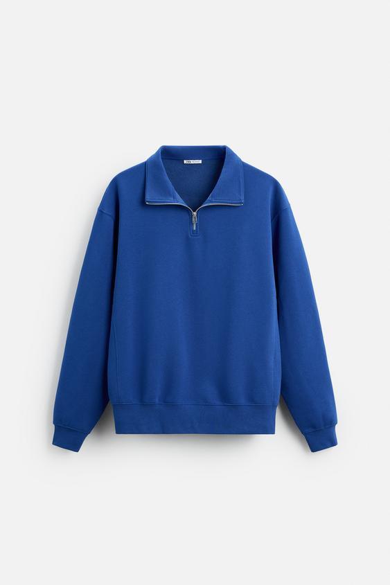 ZARA ТОЛСТОВКА С КОРОТКОЙ ЗАСТЕЖКОЙ-МОЛНИЕЙ, ЯРКО-СИНИЙ