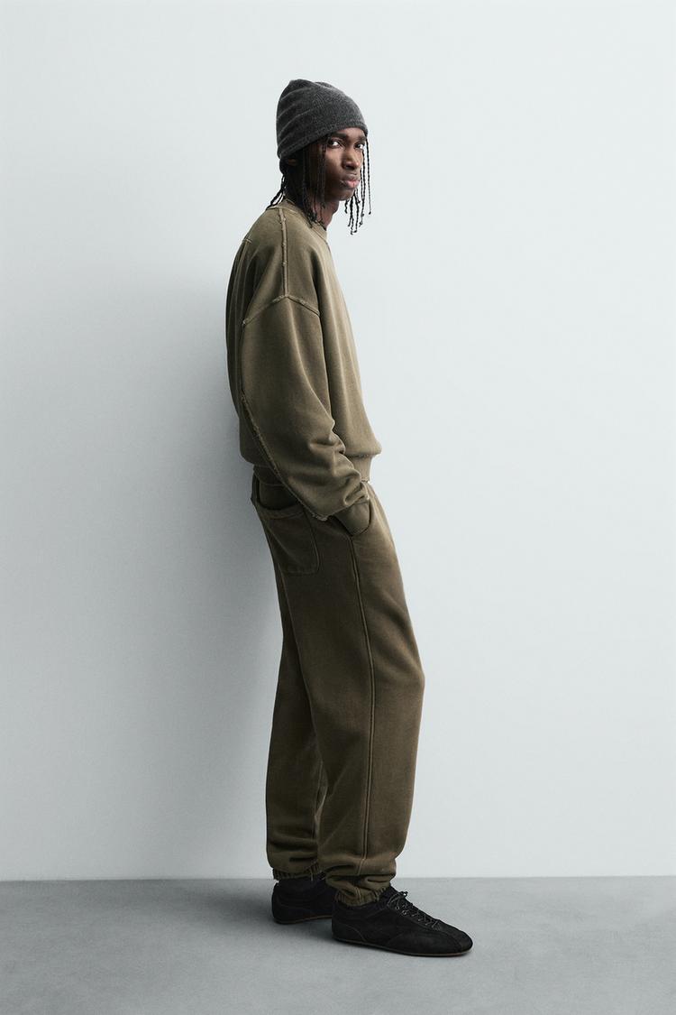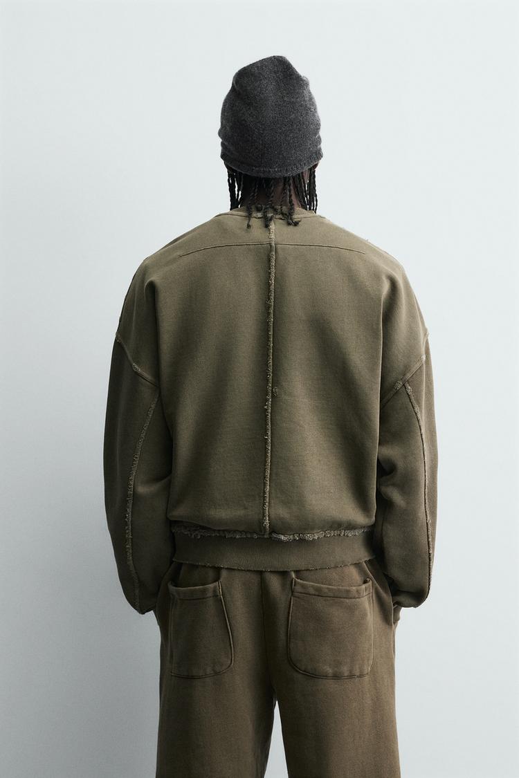ZARA ТОЛСТОВКА С КРУГЛЫМ ВЫРЕЗОМ И ЭФФЕКТОМ ПОТЕРТОСТИ, ХАКИ