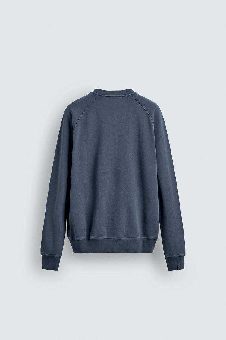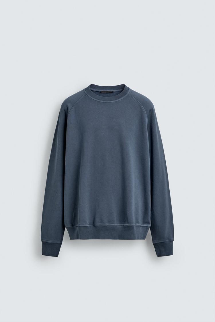 ZARA ТОЛСТОВКА С КРУГЛЫМ ВЫРЕЗОМ И ЭФФЕКТОМ ПОТЕРТОСТИ, СИНИЙ