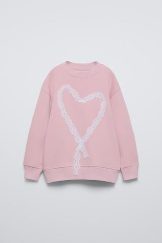ZARA ТОЛСТОВКА С КРУЖЕВОМ «СЕРДЦЕ», РОЗОВЫЙ