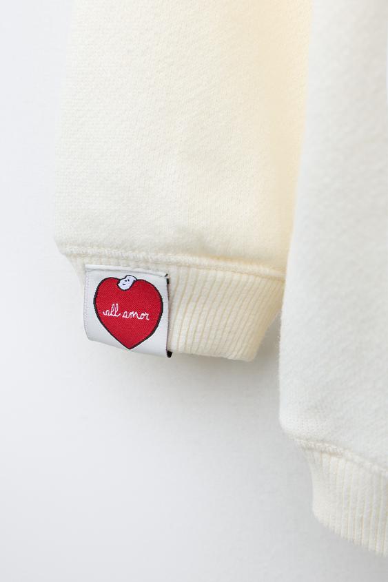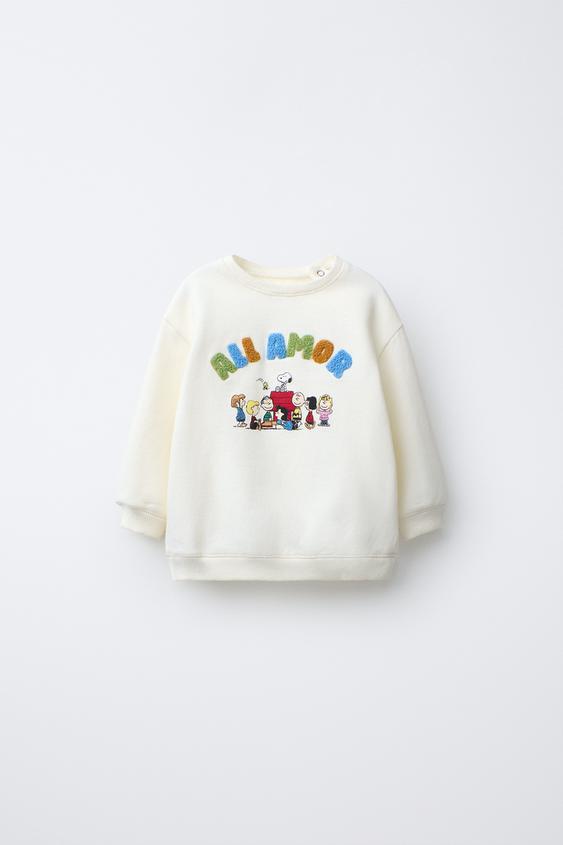 ZARA ТОЛСТОВКА С МАХРОВОЙ НАШИВКОЙ SNOOPY PEANUTS™, СВЕТЛЫЙ ЭКРЮ