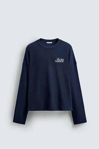 ZARA ТОЛСТОВКА С НАДПИСЯМИ, ЧЕРНИЛЬНО-СИНИЙ