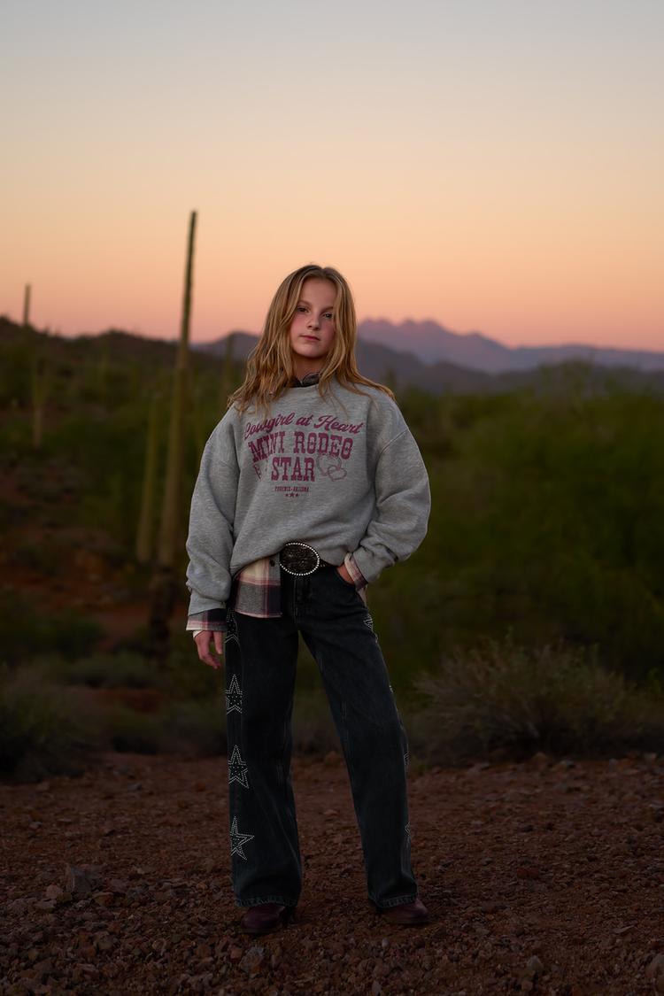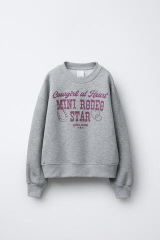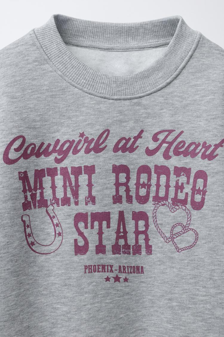 ZARA ТОЛСТОВКА С НАДПИСЬЮ COWGIRL, СЕРЫЙ МЕЛАНЖ