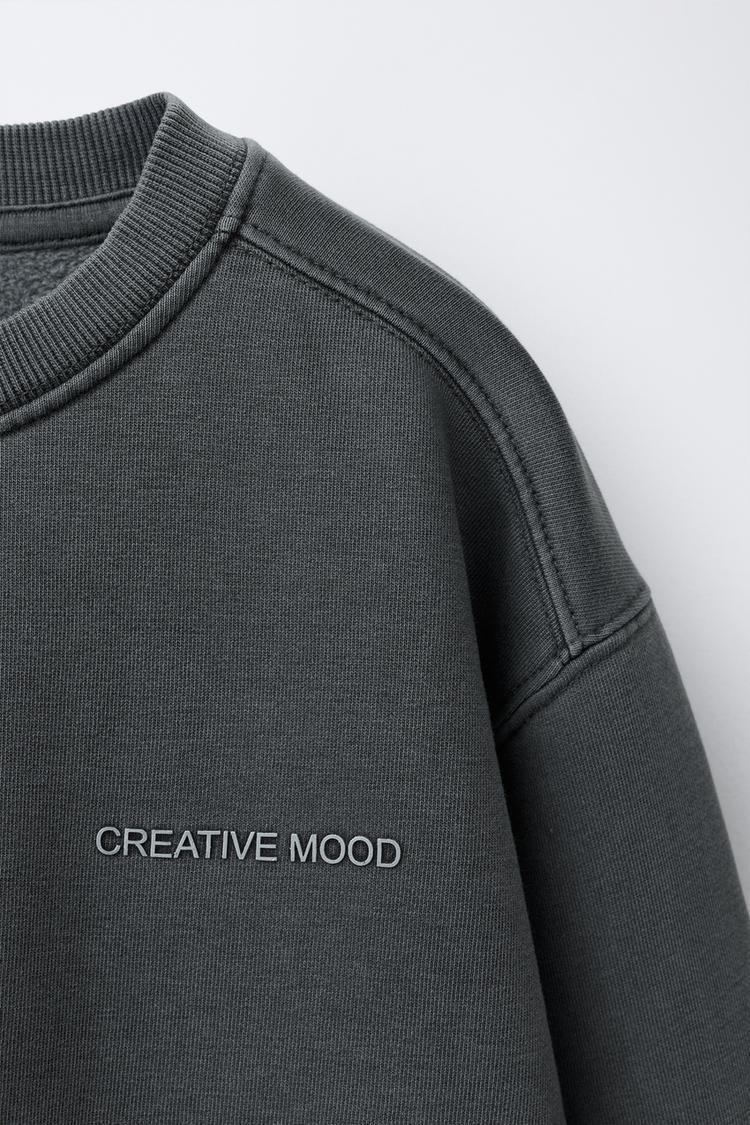 ZARA ТОЛСТОВКА С НАДПИСЬЮ И ЭФФЕКТОМ ПОТЕРТОСТИ, СЕРЫЙ