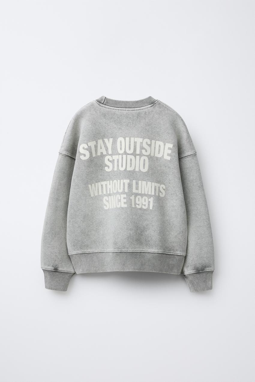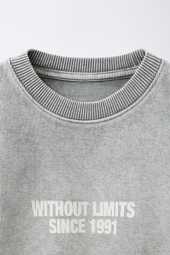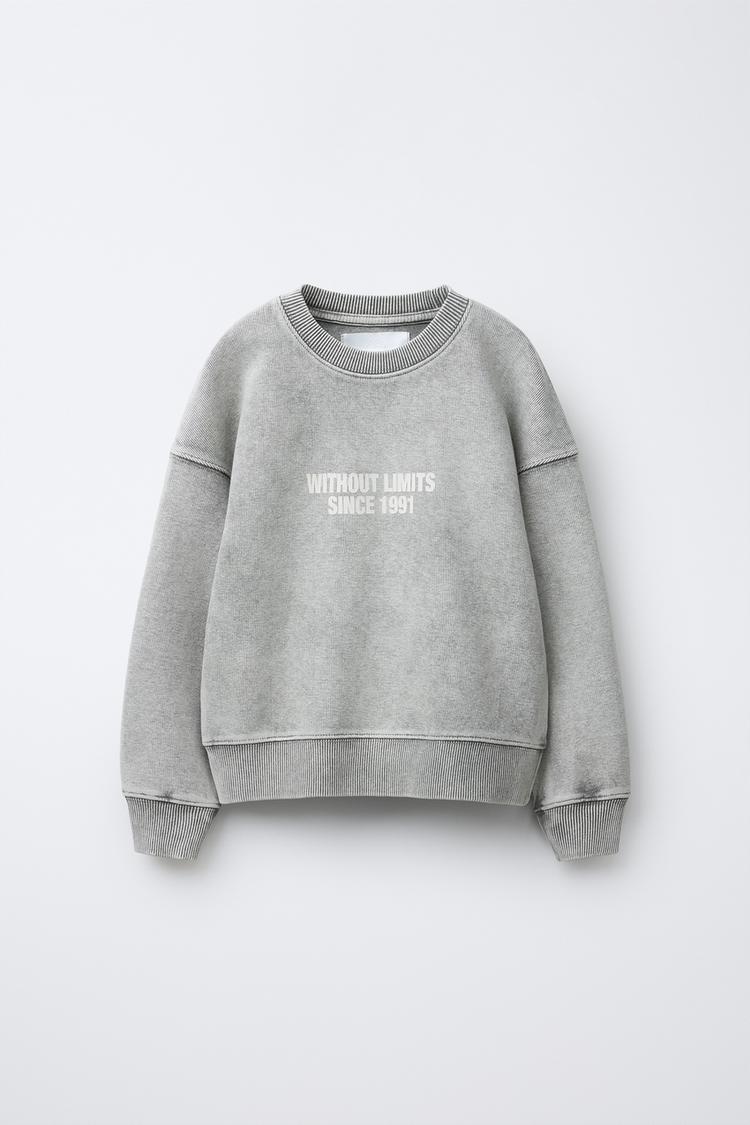 ZARA ТОЛСТОВКА С НАДПИСЬЮ И ЭФФЕКТОМ ПОТЕРТОСТИ, СЕРЫЙ