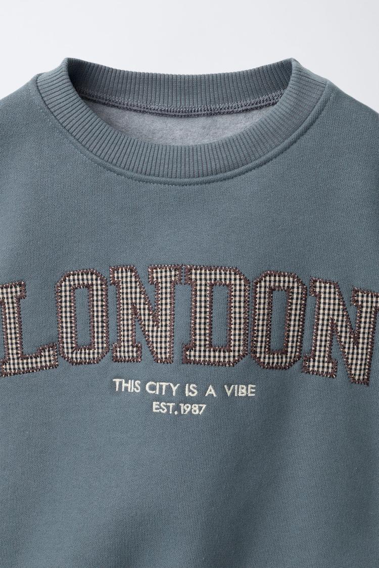 ZARA ТОЛСТОВКА С НАДПИСЬЮ И НАШИВКОЙ, АНТРАЦИТОВО-СЕРЫЙ