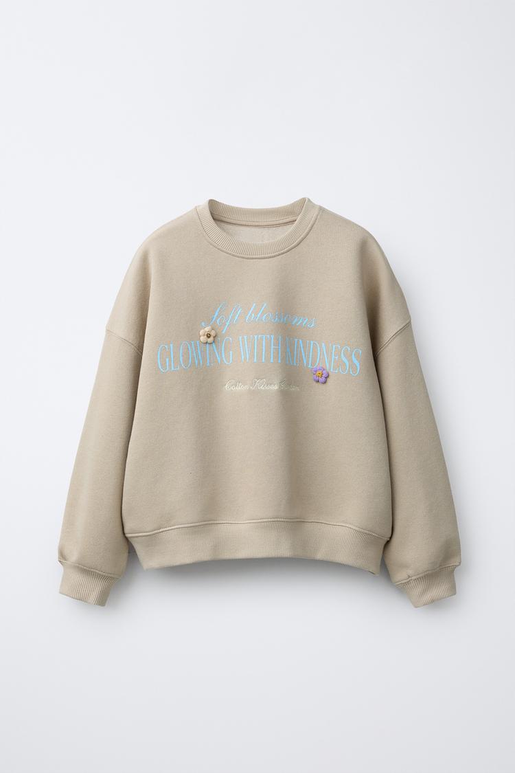 ZARA ТОЛСТОВКА С НАДПИСЬЮ И ЦВЕТАМИ, РЫЖЕВАТО-КОРИЧНЕВЫЙ
