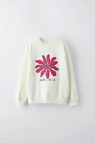 ZARA ТОЛСТОВКА С НАДПИСЬЮ И ЦВЕТОЧНЫМ ПРИНТОМ, ЭКРЮ