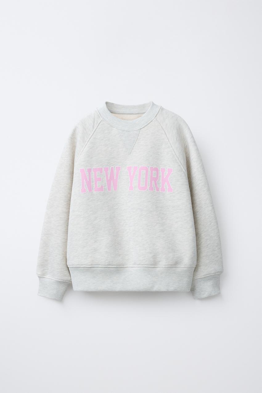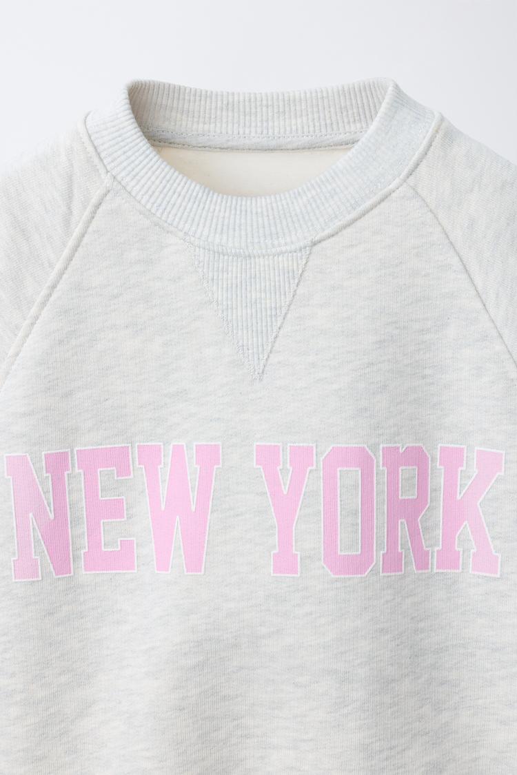 ZARA ТОЛСТОВКА С НАДПИСЬЮ В СТИЛЕ ПРЕППИ, СЕРЫЙ МЕЛАНЖ