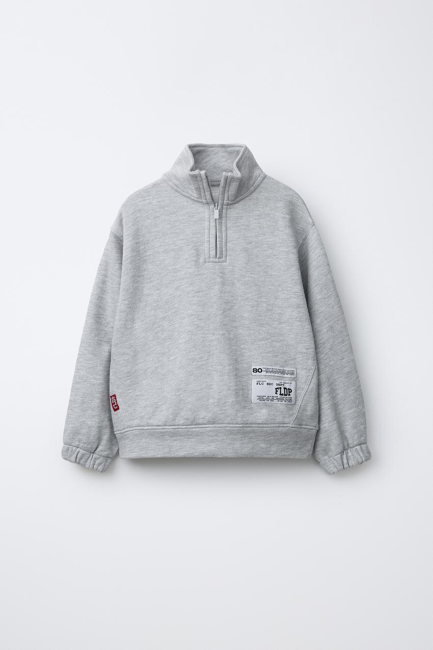 ZARA ТОЛСТОВКА С НАШИВКОЙ, СЕРЫЙ МЕЛАНЖ