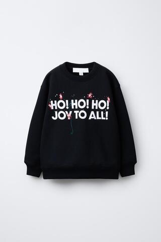 ZARA ТОЛСТОВКА С ПРИНТОМ «ДЕД МОРОЗ», ЧЕРНЫЙ