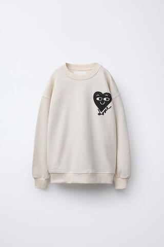 ZARA ТОЛСТОВКА С ПРИНТОМ, ЭКРЮ