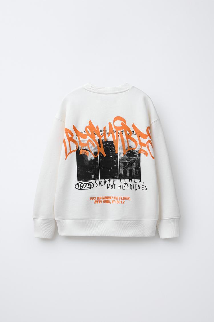 ZARA ТОЛСТОВКА С ПРИНТОМ «ГРАФФИТИ», БЕЛЫЙ