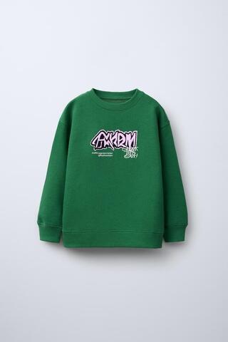 ZARA ТОЛСТОВКА С ПРИНТОМ «ГРАФФИТИ», ЗЕЛЕНЫЙ