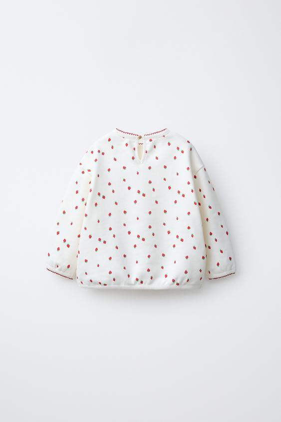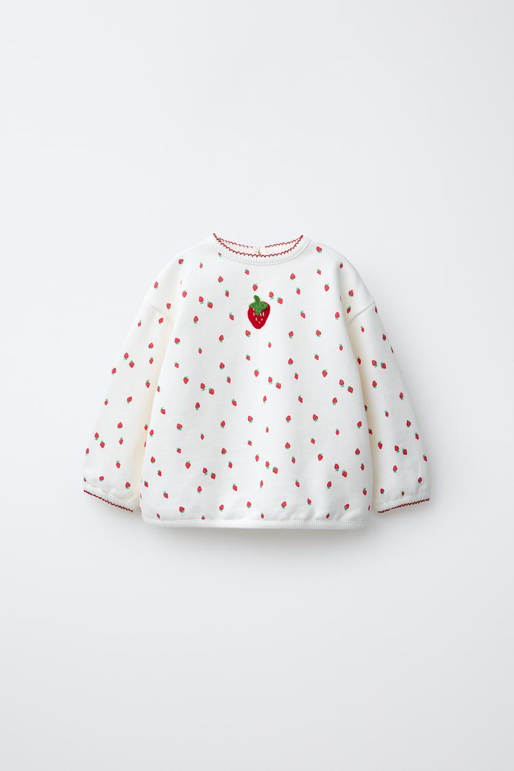 ZARA ТОЛСТОВКА С ПРИНТОМ «КЛУБНИКА», ЖЕЛТОВАТО-БЕЛЫЙ