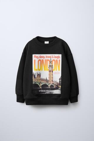 ZARA ТОЛСТОВКА С ПРИНТОМ «КРУГЛЫЙ ГОРОД», ЧЕРНЫЙ