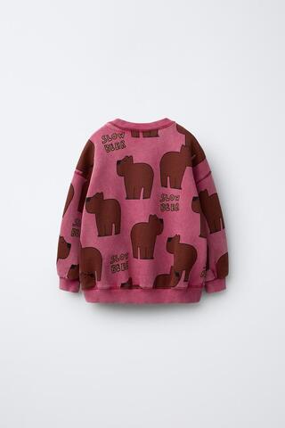 ZARA ТОЛСТОВКА С ПРИНТОМ «МЕДВЕДИ», ЦВЕТ РОЗОВОГО МЕЛА