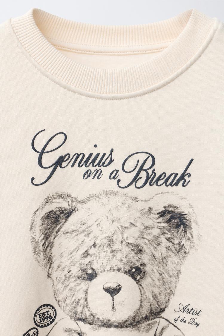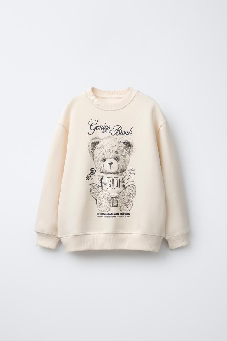 ZARA ТОЛСТОВКА С ПРИНТОМ «МЕДВЕЖОНОК», ЭКРЮ
