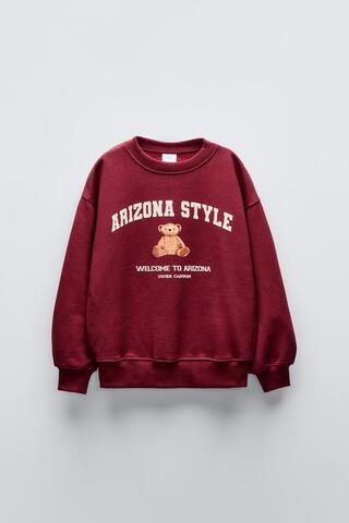 ZARA ТОЛСТОВКА С ПРИНТОМ «МЕДВЕЖОНОК» И НАДПИСЬЮ, ЦВЕТ БУРГУНДСКОГО ВИНА