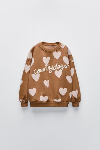 ZARA ТОЛСТОВКА С ПРИНТОМ «СЕРДЕЧКИ» И ВЫШИВКОЙ, КАРАМЕЛЬНЫЙ
