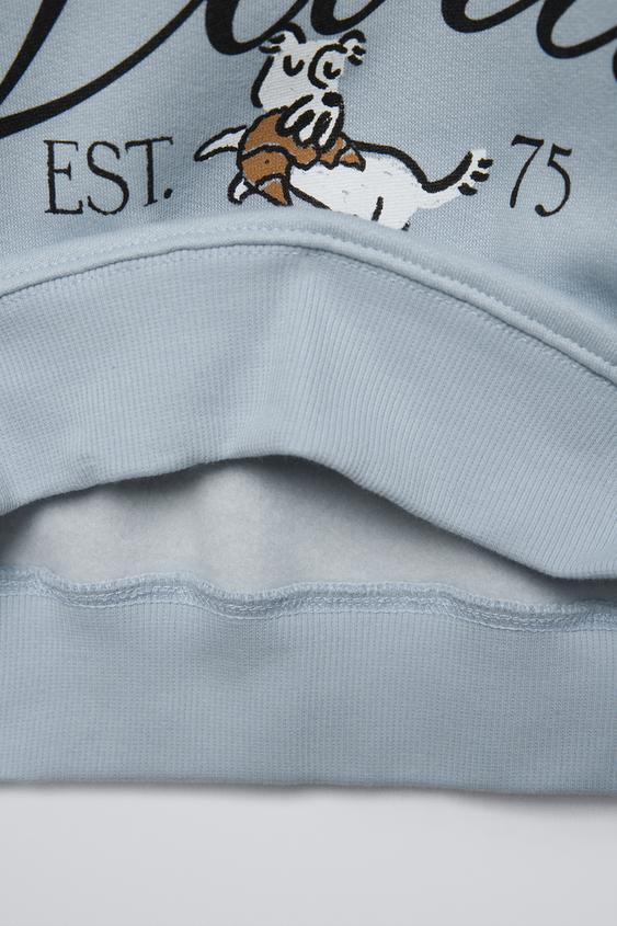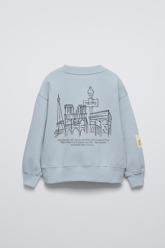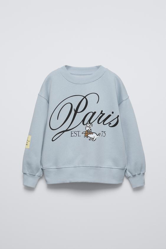 ZARA ТОЛСТОВКА С ПРИНТОМ «СОБАКА» И НАДПИСЬЮ PARIS, ГОЛУБОЙ