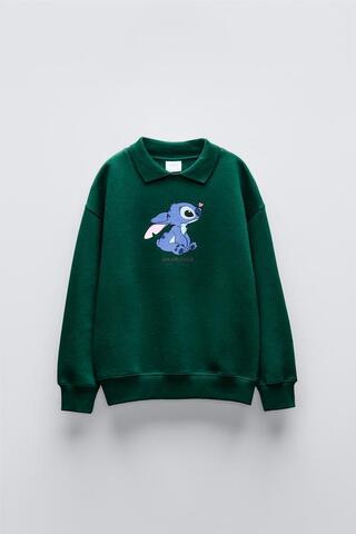 ZARA ТОЛСТОВКА С ПРИНТОМ STITCH & ANGEL © DISNE, ТЕМНО-ЗЕЛЕНЫЙ