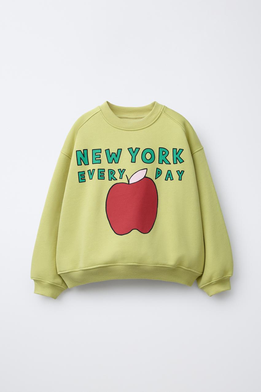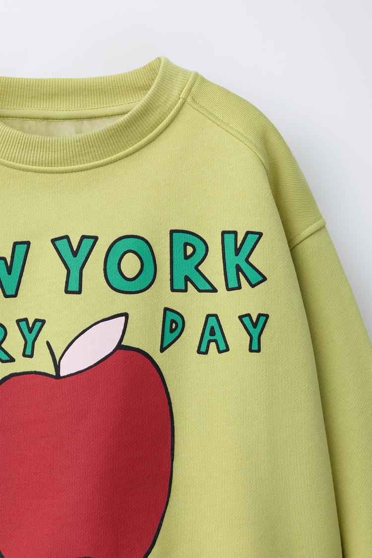 ZARA ТОЛСТОВКА С ПРИНТОМ «ЯБЛОКО», ЗЕЛЕНЫЙ