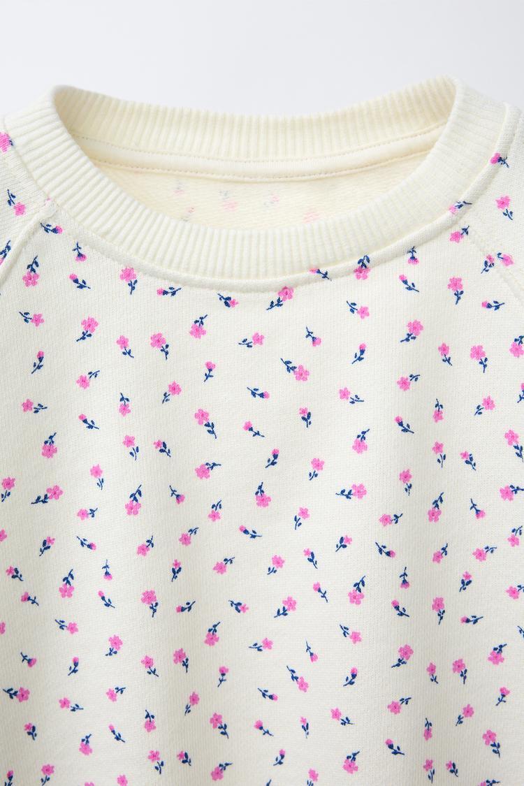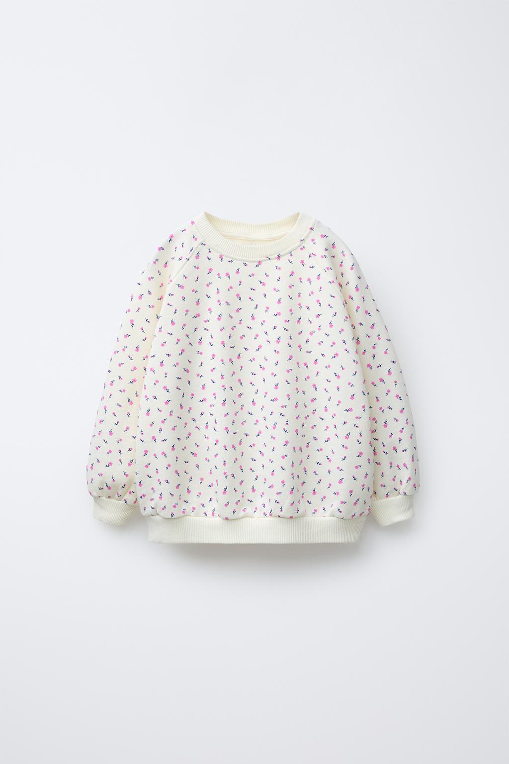 Толстовка с круглым вырезом и длинными рукавами. Детали в рубчик. Цветочный принт.