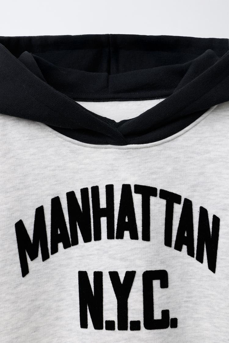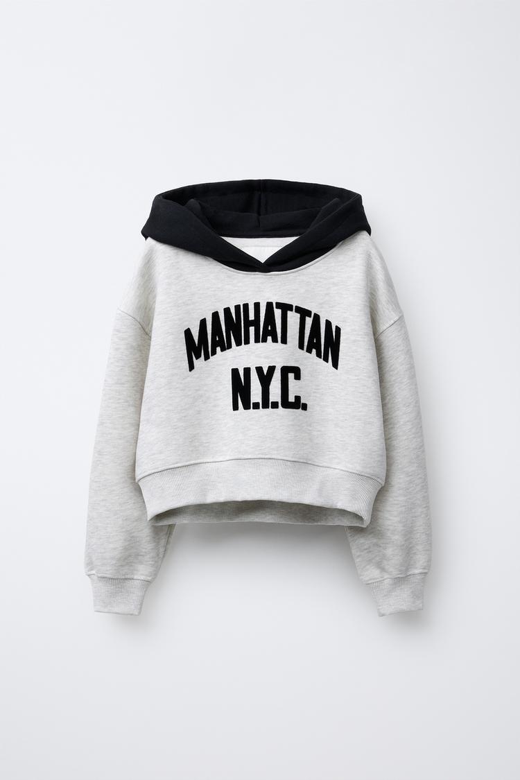 ZARA ТОЛСТОВКА С РЕЛЬЕФНОЙ НАДПИСЬЮ, СЕРЫЙ МЕЛАНЖ