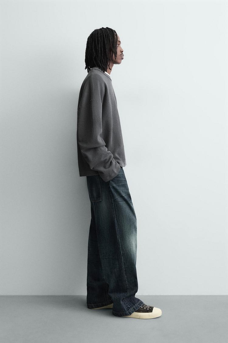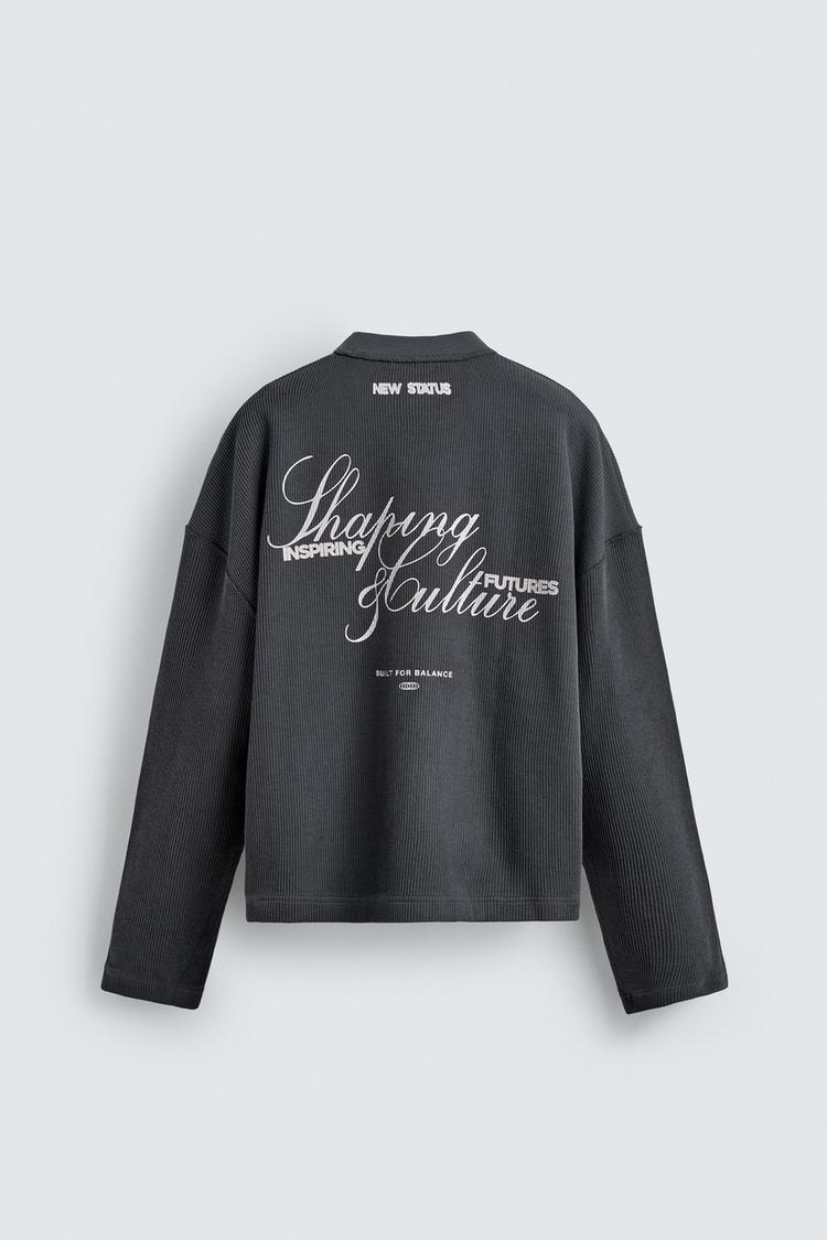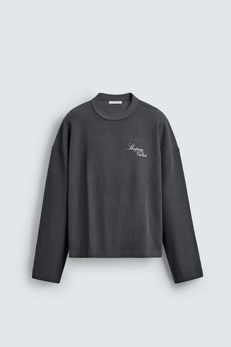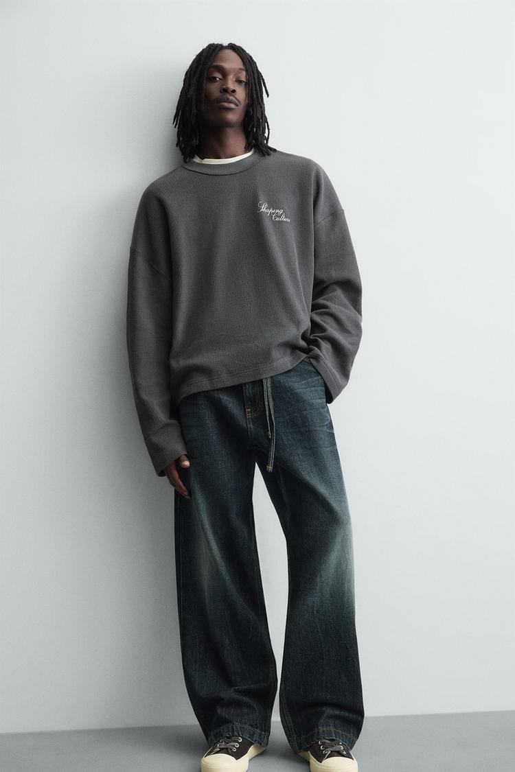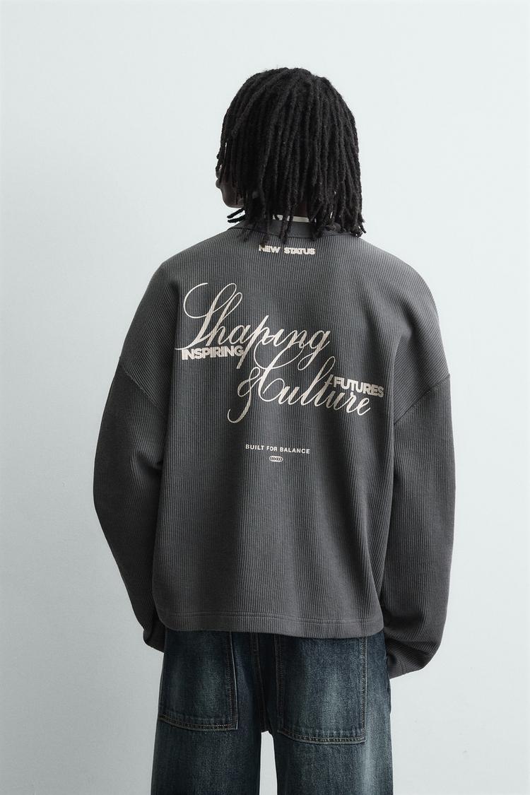 ZARA ТОЛСТОВКА С РЕЛЬЕФНОЙ ТКАНЬЮ И НАДПИСЬЮ, СВИНЦОВЫЙ