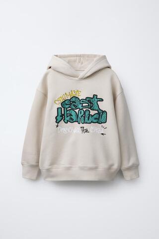 ZARA ТОЛСТОВКА С РЕЛЬЕФНЫМ ПРИНТОМ, ПЕСОЧНЫЙ